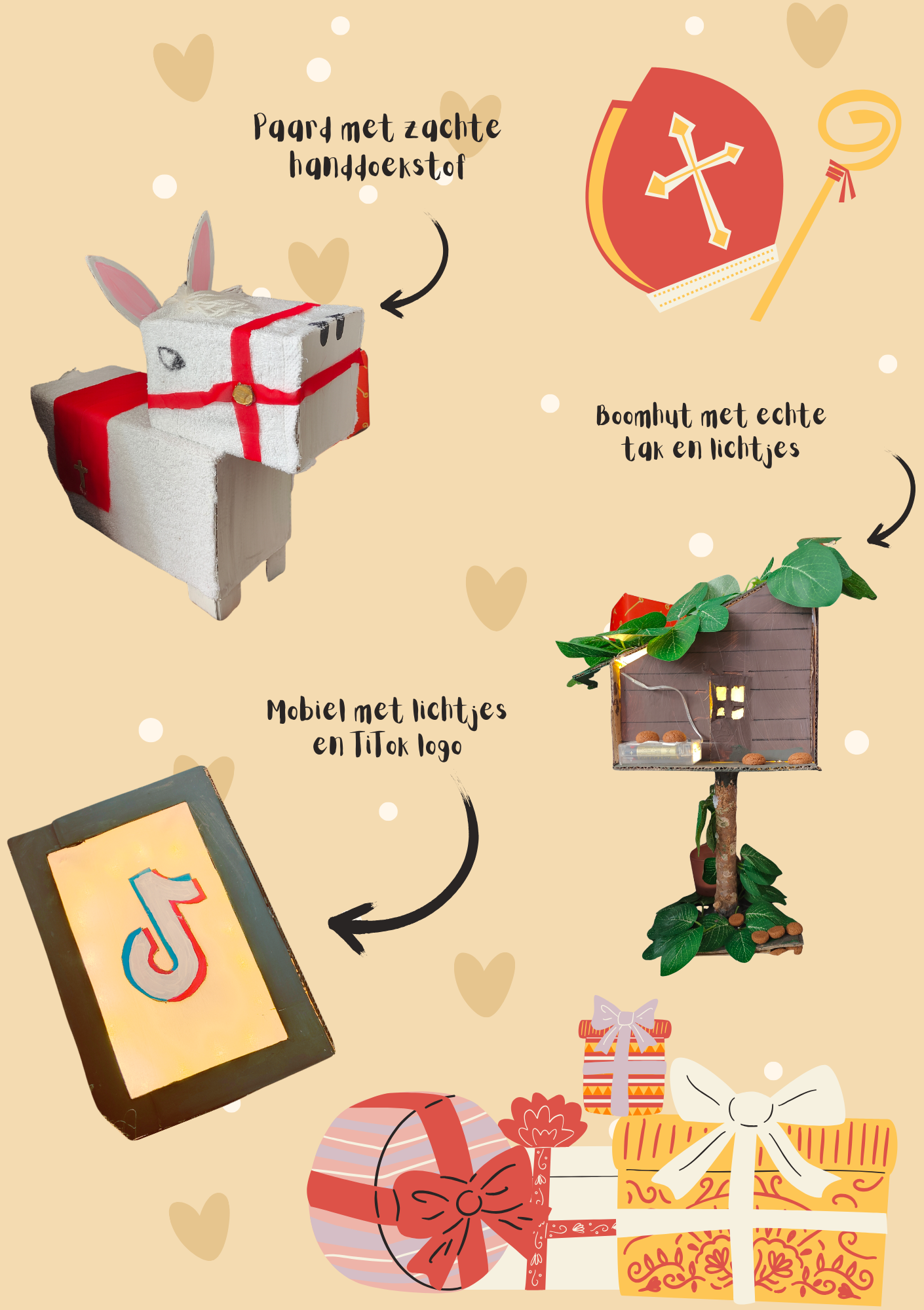 In overleg kan ik de surprise inpakken in Sinterklaascadeupapier en voorzien van een label met naam. Dan is de surprise helemaal af!